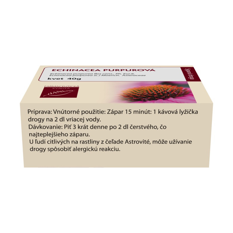 Latinský názov materskej rastliny a čeľade: Echinacea purpurea (L.) Moench Asteraceae