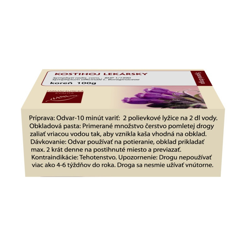 Latinský názov materskej rastliny a čeľade: Symphytum officinale L, Boraginaceae