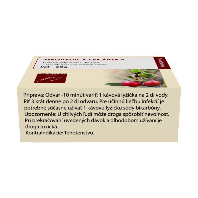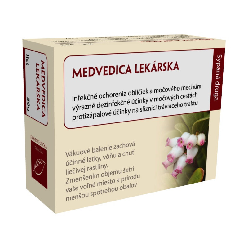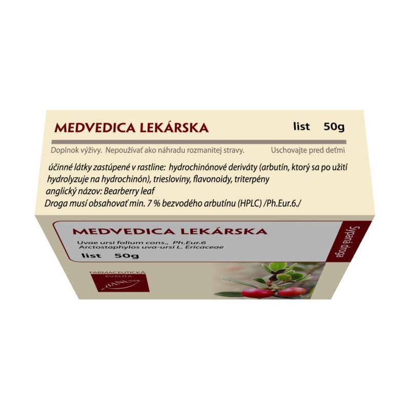 Latinský názov materskej rastliny a čeľade: Arctostaphylos uva-ursi L. Ericaceae