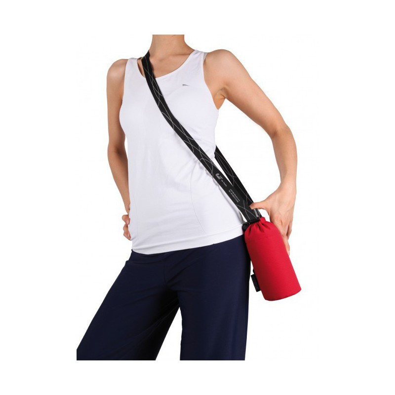 Nosí sa krížom cez hruď, ako taška, môžete ho však prirodzene zavesiť iba cez plece.Fľašu možno veľmi jednoducho odopnúť, napiť sa však môžete pohodlne aj s fľašou pripnutou na páse.