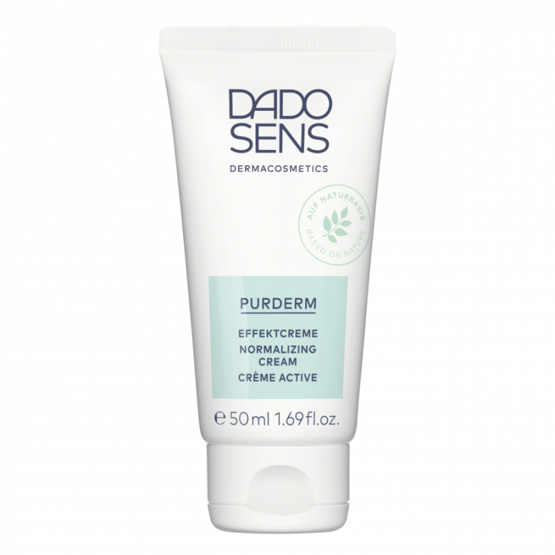 Normalizačný krém produktovej línie PURDERM od certifikovanej prírodnej dermokozmetiky DADO SENS sa mimoriadne jemne stará o problémovú pokožku a pokožku s akné v každom veku. Normalizačný krém šetrne otvára mazové žľazy a uvoľňuje, upchaté póry, zlepšuje tvorbu kožného mazu a zabraňuje vzniku vyrážok, čiernych bodiek a zápalu. Upokojuje pokožku a dodáva jej hydratáciu. Obsahuje jemné ovocné kyseliny, bambucké maslo a alantonín.