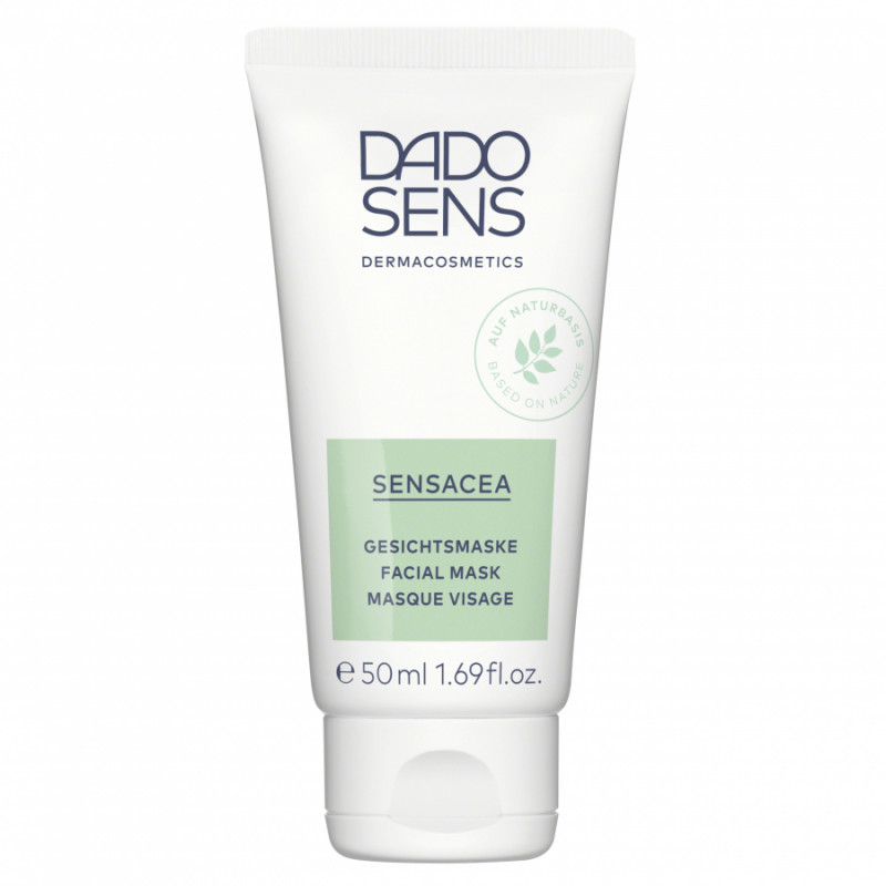 Pleťová maska z línie SENSACEA od certifikovanej prírodnej dermokozmetiky DADO SENS rozmaznáva a hydratuje hypersenzitívnu pleť s tendenciou ku kuperóze až po prvé príznaky štádia rosacei. Redukuje mierne až stredné začervenanie a ochladzuje a redukuje začervenanie líc. Vysokoúčinné ošetrujúce látky zo sladkého drievka, Aloe vera a purpurových červených rias pri pravidelnom používaní trvale zjemňujú podráždenú pokožku a zabezpečujú príjemný pocit s dlhodobým účinkom. Je vhodným doplnkom terapeutickej starostlivosti o mierny stupeň rosacey.